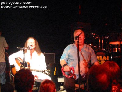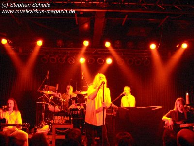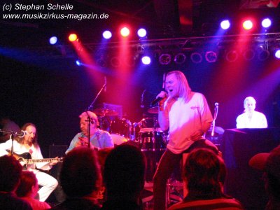 Der kleinste Konzertsaal während dieser Tour bot eine recht kleine Bühne, auf der die Musiker gerade Platz hatten. Und nach gut einer halben Stunde Umbaupause - ich frag mich heute noch, warum das so lange gedauert hat - kamen die fünf Engländer, an denen auch der Zahn der Zeit nicht vorübergegangen ist ans Gerät. Gleich war die Stimmung in dieser, einer Sauna gleichenden Halle, die komplett ausverkauft war, kurz vor dem Siedepunkt.