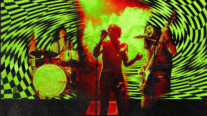 ihr in nichts nach. Das Männertrio an Schlagzeug, Gitarre und