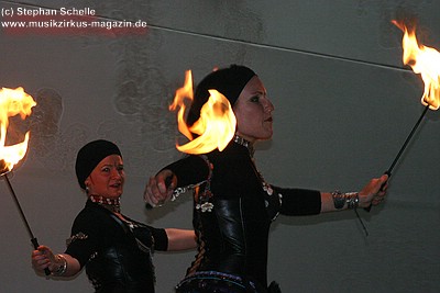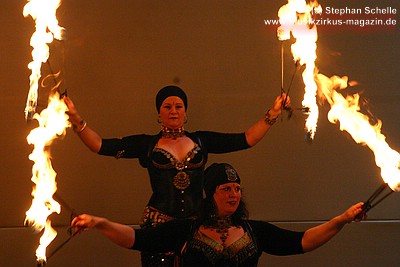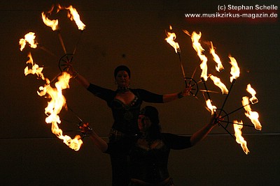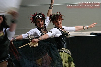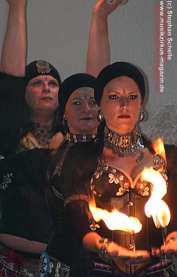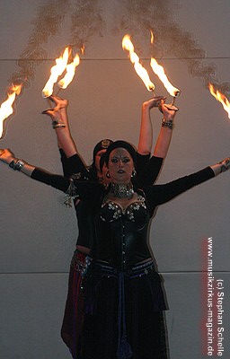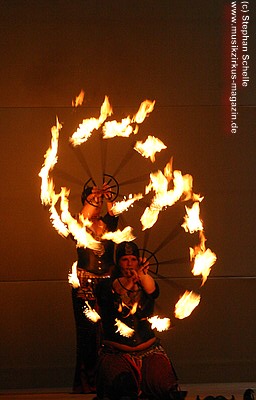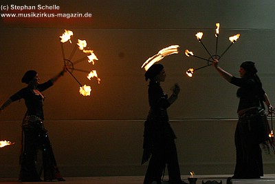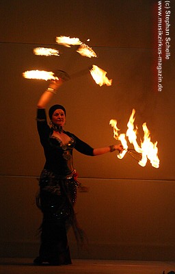 Showpunkt statt, eine Fächer- und Feuertanzdarbietung von drei reizenden