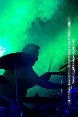 die Liveband mit donnernden Riffs und fetzigen Breaks loslegen. Aber
