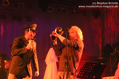 Betreten der Bühne eine kleine Fechteinlage ein. Musikalisch legten sich