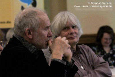 Nach dieser spaßigen Einlage ließ Trenkler die Karriere Erocs als Musiker und Masterer Revue passieren. Nicht nur der bekannte Hit „Wolkenreise“, der sogar James Last zu dem Titel „Biscaya“ inspirierte, macht Eroc zu einem würdigen Preisträger. Vor allem auch die Experimente mit ungewöhnlichen, ja sogar provozierenden Sounds und Soundcollagen sind es, die ihn auszeichnen. Als Beispiel seit hier das Stück „Horrogoll“ von seinem 75’er Solodebütalbum genannt.
