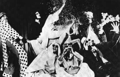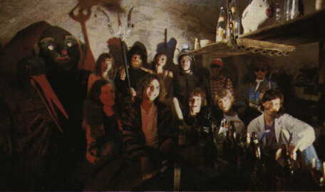 | im raststättenrestaurant wird die speisekarte studiert. toni und willi brauchen was kräftiges. ,,2 x eisbein mit sauerkraut und 2 korn!" milla muß abnehmen, bestellt deshalb nur gemischtes eis mit heißen kirschen. ,,1 dutzend froschschenkel in knoblauchsoße!" erce will seinen zimmergenossen in der kommenden nacht was bieten. lupo, kenner der französischen küche und weinkeller, läßt sich viel zeit. er wägt ab, entschließt sich - nein doch nicht. nach einer halben stunde wählt er: canapés d'oeufs durs au sel á la chateaubriand. als ihm der ober nach einer weiteren halben stunde 2 halbe hartgekochte eier bringt, hat lupo tränen in den augen, zahlt und verläßt fluchtartig das lokal. dann wieder im bus. ein bißchen lesen, bißchen quatschen, bißchen schlafen. ein bißchen frieden. dazu hardrockgedröhne vom afn. erce hat auf der straßenkarte eine abkürzung entdeckt, verläßt die autobahn, fährt über landstraßen, über landwege, dann waldwege, dann nur noch wald. im rückwärtsgang wieder zurück zur landstraße, auto-bahn, stadtbahn, endlich stadthalle.