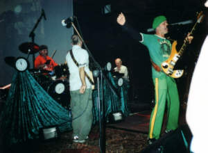 Mit GREEN aufzutreten, ist dann noch einmal etwas ganz Besonderes und nur, wer die Band schon einmal live erlebt hat, weiß, was ich meine. Wir haben unheimlichen Spaß daran gemeinsam zu spielen, freuen uns wochenlang auf unsere, leider viel zu seltenen Auftritte und geben uns, was Atmosphäre und Bühnenausstattung betrifft, immer besonders viel Mühe. Und ich denke, dass die Zuschauer das mitbekommen, es herrscht seit jeher ein einzigartiges Verhältnis von Publikum und Band, und die Stimmung spiegelt das jedes Mal wieder. GREEN ist keine Coverband, die Stimmung machen will, wir sind die Songs, die wir spielen und wir spielen nur Songs, die wir auch sein können. GREEN ist quasi ein Familienunternehmen. Tattvas und meine Frau machen den Backgroundgesang, wir leben seit Jahren in einer WG, in der auch Bubi früher gewohnt hat, mit Rolf bin ich nicht erst seit unserer gemeinsamen Grobschnittzeit befreundet und dann taucht in der zweiten Hälfte unserer Konzerte unser alter Kumpel vom Marrakesh Express, "Hexer” Axel Kölpin, auf, um unsere Gruppe eindrucksvoll mit seinem Saxophon zu verstärken. Unser Nikolaus-Auftritt im Werkhof hat uns wahnsinnig Spaß gemacht, ich hatte das Gefühl, das ist auch bei den Leuten rüber gekommen und sie hatten genau so viel Spaß. Ich bin dankbar, dass ich in einer so tollen Band spielen kann. Bubi ist ein Supergitarrist, Rolf ein Drummer mit einer wahnsinnigen Power und Energie und Tattva gibt uns den Rückhalt und zaubert alle Sounds, die wir uns vorstellen. Eine Band, in der man gerne spielt, ist immer ein Geschenk; so etwas kann man nicht kaufen, hat Paul McCartney einmal gesagt. Da hat er recht und ich freue mich schon auf unseren nächsten Auftritt. Milla Kapolke, Dezember 2003 Und hier noch einige Eindrücke von Uli Weiken: Hey Stephan, schade das du gestern nicht beim Konzert warst, du hast echt was verpasst! Es dauerte von 20.30 Uhr bis 00.10 Uhr mit einer 20minütigen Pause in der sich Milla sogar die Zeit nahm mit einigen Leuten am Bühnenrand zu sprechen. Eins hat das Konzert gezeigt, Green ist "zu blöd Musik zu spielen", sie LEBEN MUSIK und das war spürbar. Milla mit seinen typisch lockeren Sprüchen zwischen den Songs, immer wieder der Hinweis auf den Nikolaustag, Bubi Hönig mit seinen wahnsinnigen Gitarrensolos, und Rolf sollte besser nackig spielen so wie er sich verausgabte. Frag mich nicht wie der Keyboarder heißt (Anm.: Deva Tattva), er hielt sich meist im Hintergrund, sein Anteil war jedoch nicht zu überhören, man sah ihn leider nur wenn er auch zur Gitarre griff.