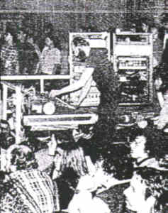Alle Hände voll zu tun hatte an diesem Abend auch "Ballermann" - technischer Direktor, Mr. Show. Er bediente die Regler und es muß lobend erwähnt werden, daß er für einen sauberen Sound sorgte. Die Formation Grobschnitt setzt sich wie folgt zusammen: Toni Moff Mollo (Gesang, Licht-Design), Milla Kapolke (Baß, Gesang), Willi Wildschwein (Gesang, Gitarre), Lupo (Gitarre), Eroc (Schlagzeug). Jürgen Kramer (Tasteninstrumente) ist noch nicht lange bei der Band hat sich aber ausgezeichnet eingespielt. Zufrieden waren die Besucher .... .... niedrigen Eintrittspreisen. Diese kamen zustande, weil das Konzert von der Kreissparkasse Köln veranstaltet wurde. ..... ... 11. Dezember im Rahmen eines Festivals in der Westfalenhalle in Dortmund. Zahlreiche andere Auftritte gehen diesem Termin ..... |
