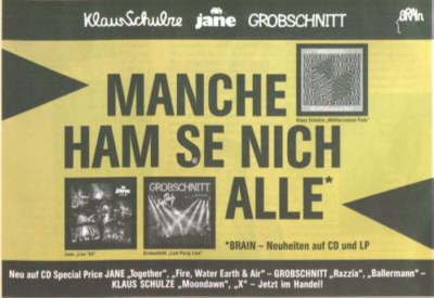 | Anzeige aus Musikexpress zum Brain-Sampler 1990 | Aufkleber des Mendener Fanclubs | |