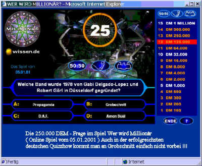 Bildschirmanzeige von "Wer wird Millionär"