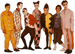 die Band Crowded House zusammen mit seinen Split Enz-Kollegen