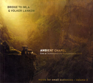 Chapel Bridge To Imla, das sind die deutschen Elektronikmusiker Hans-Dieter „Hadi“ Schmidt (Synthesizer, Keyboards, EWI) und Michael Brückner (Soundscapes, Synthesizer). Die beiden haben am 28.09.2018 in der kleinen Schlosskirche von Rumpenheim ein Konzert zusammen mit Volker Lankow (Percussion, Samples) gegeben, das Anfang 2022 in digitaler Form (über Bandcamp) herausgekommen ist. Das Konzert war die Abschlussveranstaltung (Finissage) der „Rumpenheimer Kunsttage“, einem jährlichen Kulturfestival in der Nähe von Frankfurt, Deutschland. |