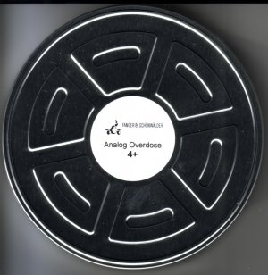 Fanger & Schönwälder – Analog Overdose 4+ Zusätzlich zur „Analog Overdose 4“ kommt zeitgleich eine weitere CD mit dem Titel „Analog Overdose 4+“ bei Manikin heraus. Das Besondere an dieser CD, die zwei weitere Stücke bereithält und somit die CD „Vol. 4“ vervollständigt, sind die Verpackung und die Limitierung der Silberscheibe. Die CD kommt in einer sehr schönen Blechdose, ähnlich wie es bei Teil 1 der Fall war, heraus. Dieses Mal erinnert die Verpackung allerdings an eine Tonbandrolle. |