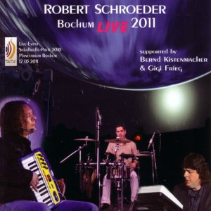 Die CD ist 46 Minuten lang und enthält die beiden Auftritte, die Robert im Bochumer Planetarium absolvierte. Der erste Teil des Konzertes bestand aus zwei Stücken, die er zusammen mit dem Schlagzeuger Gigi Frieg präsentierte. Die CD beginnt aber zunächst mit der Ankündigung von Stefan Erbe, der durch das Programm der Preisverleihung führte. Der erste Track „The Way To Cygnus-A“ (14:20 Minuten lang) ist ein Auszug aus seinem Album „Cygnus-A“, das ursprünglich im Jahr 1982 herauskam und das Robert kürzlich wiederveröffentlichte. Dieses erste Stück bot die ganze Bandbreite des herrlichen 82’er Werkes und passte so gut zu den spacigen Animationen unter der Planetariumskuppel. Aber auch auf CD hat dieser Track nichts an Faszination verloren und klingt einfach nur klasse. Robert bediente bei dem Gig ein neues Instrument, das aus zwei Tastaturen, die wie bei einer Ziehharmonika angeordnet sind, besteht. So konnte man genau beobachten, dass die Musik live gespielt wurde. Beim zweiten Stück „Oscillation“ (12:40 Minuten) ging es loungiger und rhythmischer zu. In diesem Track verbindet Robert seine Wurzeln mit neuen Klängen. Das ist absolut faszinierend und entwickelt – genau wie beim Konzert selbst – eine ungeheure Sogwirkung. Man wird förmlich von dem Sound und der Melodie paralysiert. Ein wunderbarer Titel der die Seele schweben lässt und doch einen Rhythmus hat, der zur Bewegung drängt. Für mich ist dieses Stück mit dass Beste, was Robert in der letzten Zeit veröffentlicht hat. Den zweiten Teil des Konzertes bestritten Robert und Gigi dann zusammen mit dem Berliner Elektroniker Bernd Kistenmacher. Diese Zugabe bestand aus dem Stück „Dreamland“, das in drei Teile unterteilt ist. Bernd hatte den „Prologue“ und den „Epilogue“ beigesteuert, was man auch deutlich an der Musik hört, während der Mittelteil aus der Feder von Robert Schroeder stammt. Eine tolle Kombination dieser beiden Musiker. „Live Bochum 2011“ ist eine tolle CD, nicht nur für diejenigen, die an der Preisverleihung teilgenommen haben und das wirklich herausragende Konzert genossen haben, sondern auch für alle anderen Elektronikfreunde, denn sie bekommen hier Robert Schroeder at it’s best. Wer Robert’s Musik mag, braucht dieses Album. Stephan Schelle, April 2011 |