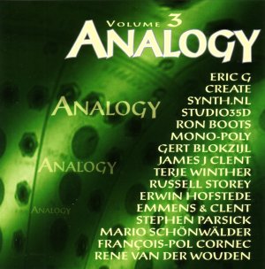 Sampler – Analogy Vol. 3 Im Herbst 2007 geht die „Analogy“-Sampler-Reihe des niederländischen Elektroniklabels Groove Unlimited in die mittlerweile dritte Runde. Wie schon bei den Vorgängern hat das Label wieder einige Musiker der Szene mit bisher unveröffentlichten Stücken auf einem Silberling zusammengefasst. Unter den insgesamt 16 Musikern befinden sich neben mehreren unbekannten auch in der Szene gut bekannte Namen wie zum Beispiel Gert Emmens, Create, Stephen Parsick, Mario Schönwälder oder Ron Boots. Im vierseitigen Booklet sind kurze Angaben der Musiker zu den einzelnen Stücken gedruckt, die auf Komposition oder Equipment des jeweiligen Musikers hinweisen. |