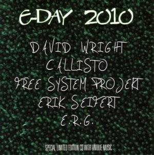 Sampler – E-Day 2010 Jährlich finden in den Niederlanden die beiden Elektronikfestivals E-Day und E-Live, die vom Elektroniklabel Groove Unlimited veranstaltet werden, statt. Seit einigen Jahren kann man auch zu jedem Event eine CD mit Stücken der auftretenden Künstler erwerben. Am 22.05.2010 fand das letzte E-Day-Festival in Oirschot, in der Nähe von Eindhoven statt. Passend zu diesem Event erschien die CD „E-Day 2010“, die in einer Papphülle ausgeliefert wird. |