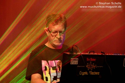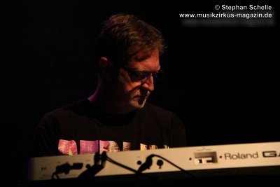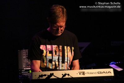 Seine Musik war sehr symphonisch, sphärisch sowie schwebend angelegt. Harmoniebögen und fast endlose, ambiente Klangschwaden zogen durch den Raum. Durchwoben waren diese durch einige Rhythmustupfer und Passagen in denen die „Berliner Schule“ durchblitzte. Da war es kein Wunder, dass Piednoir ein T-Shirt mit dem Schriftzug „Berlin“ trug. Das sollte sicherlich auch seine Vorliebe für die traditionelle Musik der großen Berliner Acts widerspiegeln.
