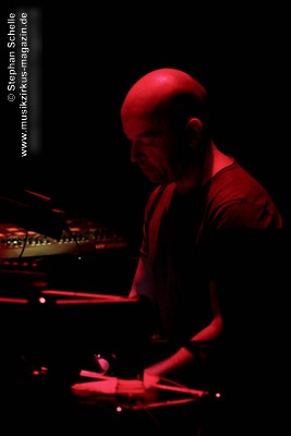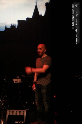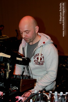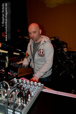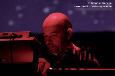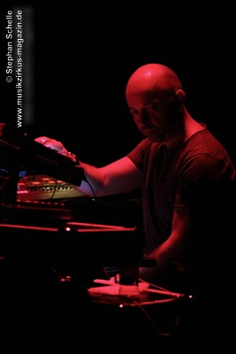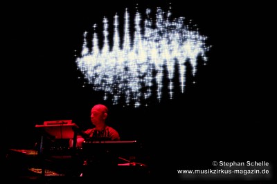 Die Musik entwickelte sich immer weiter in dem nun auch der Drumcomputer für den nötigen Rhythmus sorgte, während Paul sehr eingängige und schöne Melodien einbaute. Im weiteren Verlauf (es müsste der zweite Track gewesen sein, was sich bei den passenden Übergängen und dem zusammenhängenden Set schlecht verorten lässt) kamen dann Sounds, Rhythmen und Melodiebögen auf, die sehr nahe an Tangerine Dream der späten 80’er, frühen 90’er Jahre lagen. Paul spielte diese sehr gelassen und souverän und bewegte sich dazu sehr konzentriert und ruhig.