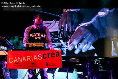 Miguel und Javi agierten sehr homogen auf der Bühne und zeigten sich musikalisch mit einem blinden Verständnis. Da merkte man dass diese beiden Musiker schon oft zusammengespielt haben. In ihre Musik woben die beiden Sounds, die an Tangerine Dream und auch Klaus Schulze erinnerten und versetzten sie mit rhythmischen Pattern aus dem Sequenzer. Während Miguel an seinen Gerätschaften drehte, bediente Javi die Tasten seiner Keyboards und ging dabei oftmals sehr filigran und mit großer Fingerfertigkeit zu Werke. Mehrfach spielte er dabei gleich zwei seiner Tasteninstrumente gleichzeitig. Gerade er war es, der jazzige Versatzstücke in die Musik integrierte.