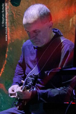 Dem folgte ein Zweierblock, beginnen mit „Tanz der Feen“, einem Stück von Max’ Soloalbum „Waldgeist“. Auch dieses Stück zeigte sich von einer atmosphärischen und teils ambienten Seite. Nach mehreren Minuten setzte Max dann einige Akzente durch rhythmische Licks, zu denen sich dann ein rockiger Schlagzeugrhythmus gesellte. Darauf folgte dann nahtlos mit „Red Moon“ ein neues, bisher unveröffentlichtes, recht ruhiges Stück (es soll auf Axess nächstem Album erscheinen). Auf flächige Sounds legte Axel einige Melodiebögen während Max atmosphärisch seine Gitarre - unter anderem mit dem E-Bow - einsetzte.