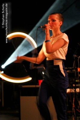 Aber auch etwas unterkühltere Klänge und Rhythmen hatten sie im Programm was sich im dritten Song „True“ zeigte. Als optisches Highlight schwang Christina dann bei „BAR Theme“ einen Leuchtstab, zu dessen Performance die Beleuchtung heruntergeschraubt wurde. Das sah wirklich klasse aus. Eines der letzten Stücke war dann recht instrumental und rhythmisch und zeigte dabei einige an Kraftwerk erinnernde Sounds. Eine gute Überleitung zum nächsten Act.