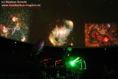 in der Kuppel des Planetariums geboten. Es folgte elektronisches Gezirpe