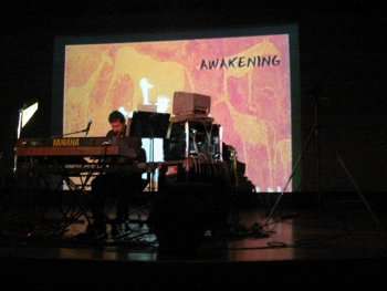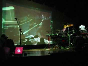 Auftritt durch eine visuelle Show. Neben Computergenerierten Fotos, die zu