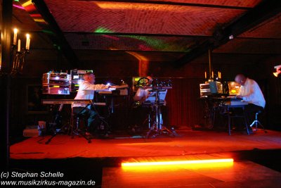daraus bestand der gut 90minütige Set der drei Elektroniker. Auf der