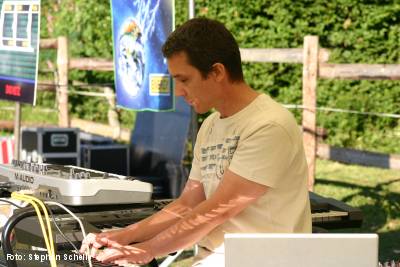 Sequenzerloops fliegen über die Wiese den Besuchern entgegen, die sich
