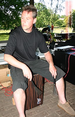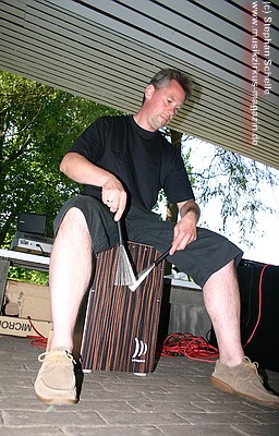 spielte. Allerdings hatte er auch ein Cajon mitgebracht, ein