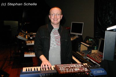 U-förmig aufgestellten Keyboardracks und seinen Computerprogrammen, dass ich