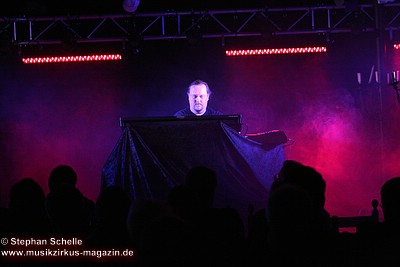 Die Keyboards waren mit einem schwarzen Tuch verhangen, sodass man ihm