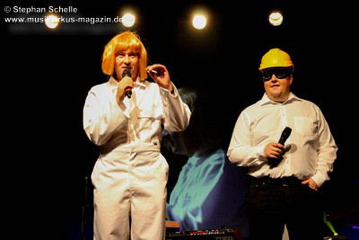 Frank Gerber und Hans-Hermann Hess, die beiden Hauptorganisatoren hatten sich zu den Ansagen wieder in Schale geschmissen. Dabei bezogen sie sich mit ihren Verkleidungen immer auf die anzusagenden Künstler. Das war wieder eine sehr schöne Idee. Daneben möchte ich aber auch die zahlreichen Helfer erwähnen, die entweder an der Kasse, am Licht, am Mischpult oder sonstige Aufgaben übernahmen. Ohne diese Helfer wäre ein solches Event nicht möglich.