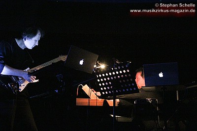 während Rhythmussequenzen und Synthiespuren aus dem Rechner kamen. Das