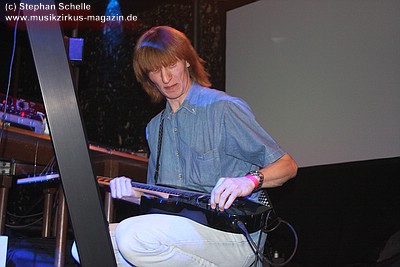 Stücken zwischen Keyboards und E-Gitarre wechselte.