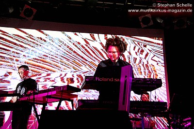 und heizten dem Publikum ordentlich ein. Die rhythmischen Tracks gingen
