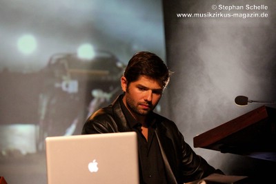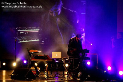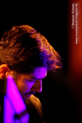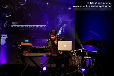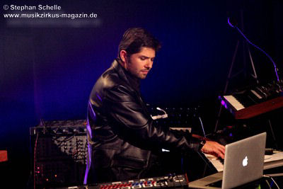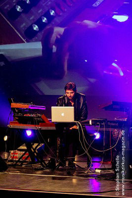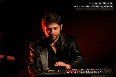 Freunde der traditionellen Elektronikmusik kamen beim Opener dieses Festivals voll und ganz auf ihre Kosten. Der diplomierte (an der Johannes Gutenberg Universität) Orchestermusiker Jona hatte von seinem Vater Janusz, der bei seinem Konzert einen kurzen Auftritt hatte, seine erste Klaus Schulze Platte und seinen ersten Synthesizer geschenkt bekommen. Damit begann seine Vorliebe für die elektronische Musik. Kein Wunder, das sich sein Stil an dem von Schulze ausrichtet. Bisher noch als Geheimtipp gehandelt, sollte er spätestens mit diesem Konzert für Schlagzeilen sorgen, denn nicht nur seine bisher fünf erschienenen CDs („Warm Sequencing“ ist gerade erst herausgekommen), sondern auch der Liveauftritt in Detmold, sein zweiter als Solokünstler, waren von außerordentlicher Güte.