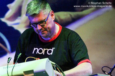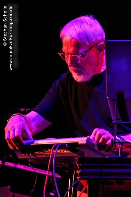 Jeder, der die Schwingungensendung kennt, weiß sofort mit dem Namen Harald Grosskopf etwas anzufangen. Sein Stück „Soweit, so gut“ war lange Zeit die Titelmelodie der Sendung. Als Schlagzeuger hat Harald darüber hinaus auch Werke von Klaus Schulze und Manuel Göttsching mit dem nötigen Rhythmus versehen. Es dauerte eine Zeit bis ihn Udo Hanten 1979 aufforderte doch selber Musik zu machen, denn Harald hatte sich dies bisher gar nicht zugetraut. Herauskam „Synthesist“, das im Jahr 1980 erschien. Darauf enthalten war auch das Stück „Soweit, so gut“. Bevor jedoch Harald mit seinem Set begann, erinnerte er an den vor vier Wochen verstorbenen Elektromusiker Udo Hanten.