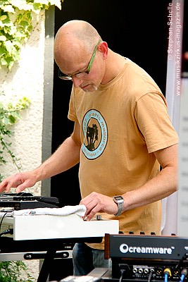 einer Rockband. Solo ist er allerdings als Keyboarder unterwegs.
