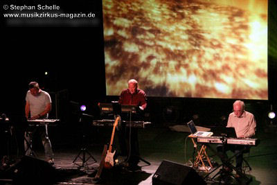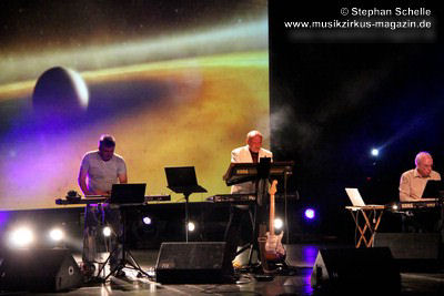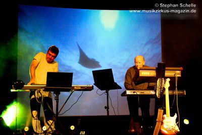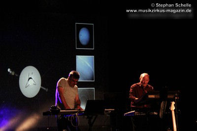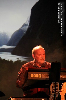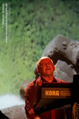 Es folgten ein hymnisch, rhythmisches „Silverbird“, ein schwebendes „Aquarelle“ (die Unterwasseraufnahmen auf der Leinwand passten perfekt dazu), das Stück „Analog“, dessen Sequenzer orientierter Mittelteil von einem Kirchenorgel-Intro und -Outro umrahmt war sowie mit „Dragon Song“ ein brandneuer Titel, der bisher unveröffentlicht ist.