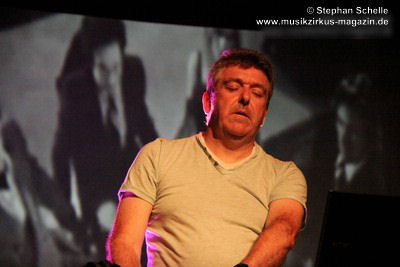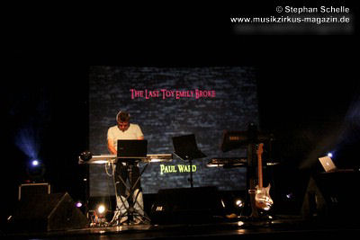 Als nächstes standen die Solostücke der beiden weiteren Protagonisten an, die jeweils dazu allein auf der Bühne agierten. Paul Ward startete in diesen Teil mit seinem Solostück „The Last Toy Emily Broke“ das mit Flächen begann, die sehr stark an Genesis Beginn von „Watcher Of The Skies“ erinnerten. Nach gut zwei Minuten erklang dann eine Spieluhr und der Sound und die Melodie änderten sich schlagartig. Zu den etwas verstörenden Bildern einer brennenden Puppe präsentierte sich Paul äußerst rhythmisch, so wie man es von seinen beiden Soloalben aus den 90’ern „For A Knave“ und „The Fear Of Make-Believe“ her kennt. Dem spendierte er aber noch einen harten Rhythmus, der das Stück in Richtung Industrial leitete. Es ist zu hoffen, dass Paul (er hat nach den beiden Alben für zahlreiche Musiker geschrieben) in naher Zukunft wieder ein Album herausbringt.