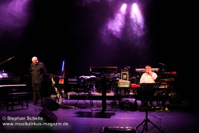 Die Setlist war ähnlich der aus Bochum. Los ging es mit „Juxtaposition Part 1“, bei dem sich John Kerr zunächst an einen Flügel begab, dessen Saiten er mit einer Art Schlagzeugstock bearbeitete. Dadurch erzeugte er zunächst einige düstere Klangwolken, denen er die Melodie des Stückes in einem kurzen Solopart folgen ließ. Den abschließenden Ton nahm Ron an den Keyboards auf und wandelte ihn zunächst in eine Synthiefläche um. Daraus entwickelte sich dann Part 1 des Titelstückes der aktuellen CD. Nach zehn Minuten wurde das Ganze dann sehr rhythmisch und aus dem Duo-Projekt entwickelte sich ein Bandsound. Dieser kam in diesem ersten Longtrack aber noch recht verhalten rüber.