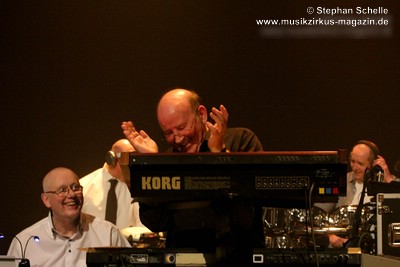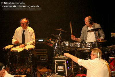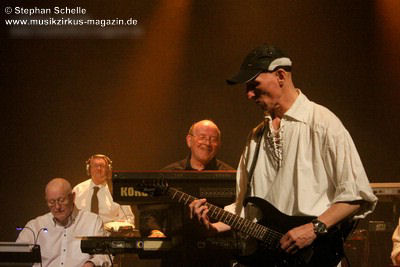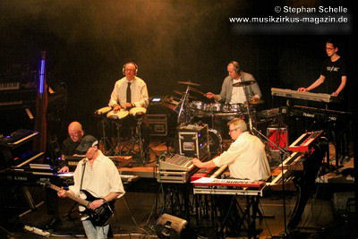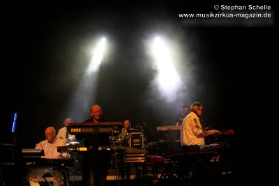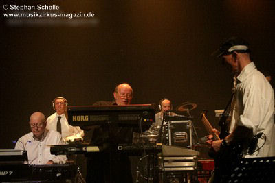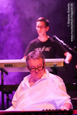 Neben John und Ron waren zahlreiche Gastmusiker mit auf der Bühne, die die beiden sehr druckvoll unterstützten. Neben Schlagzeuger Harold van der Heijden, dem jungen Keyboarder Jeffrey „Synthex“ Haster und dem Gitarristen Frank „F.D. Project“ Dorittke hatten sie mit Bas Broekhuis (Perkussion, Electronics) und dem Briten John Dyson (Keyboards) gegenüber dem Bochum-Gig noch zwei weitere Musiker auf der Bühne. Dadurch wurde das Konzert aber mehr zu einem Ron Boots, John Kerr & Friends-Konzert.