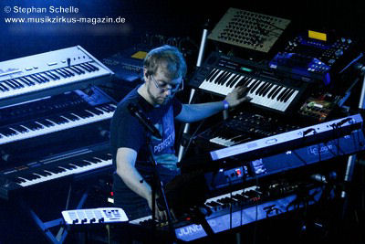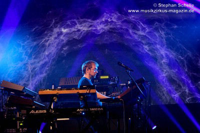 Neben eigenen Stücken huldigte Kebu auch einigen bekannten Größen aus der Instrumentalmusik. So hatte er mit „Pulsar“ ein Stück im Programm, das stark an Jean Michel Jarre angelehnt war. Zusätzlich hatte er noch Coverversionen von Vangelis‘ „Bladerunner“, Tangerine Dream‘s „Le Parc (Streethawk)“ und „Chase“ von Giorgio Moroder, einem Stück das Moroder für den Film „Midnight Express“ komponierte, in seinem Set. Und als krönenden Abschluss spielte er dann noch als Zugabe eine powervolle Version von Jan Hammer’s „Crocket’s Theme“, der Titelmelodie aus „Miami Vice“. All diesen Stücken drückte er seine ganz eigene Handschrift auf, ohne sich zu weit vom Original zu entfernen.