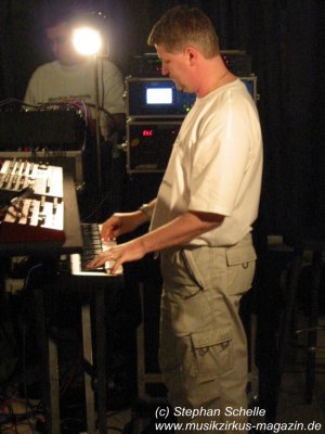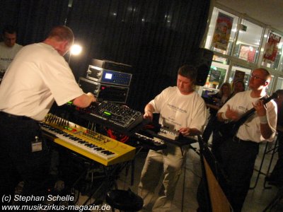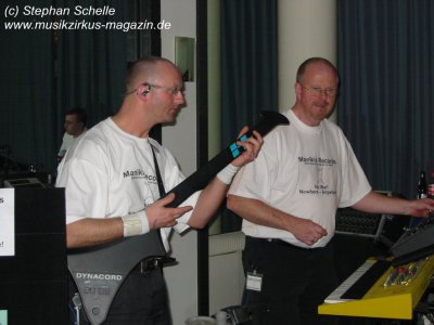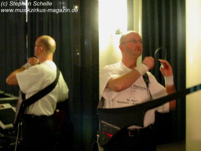 Mario und Detlef an ihren Geräten herum um ihnen die irrsten Rhythmen und