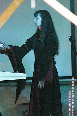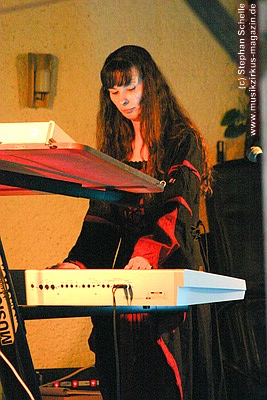 hinter ihre Keyboards. Ihr Outfit stand damit in einem Kontrast zu den