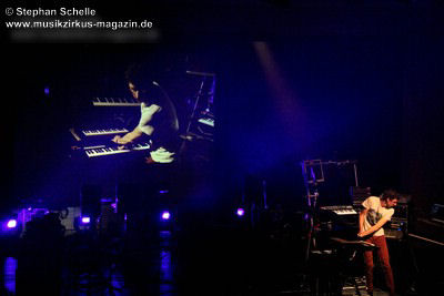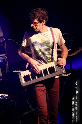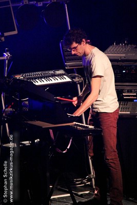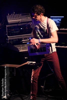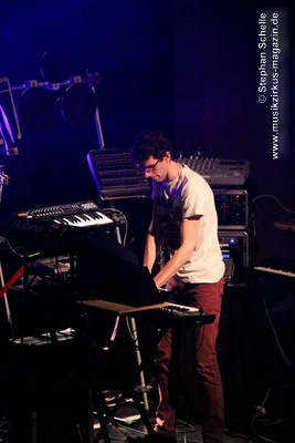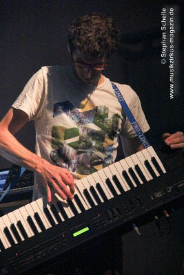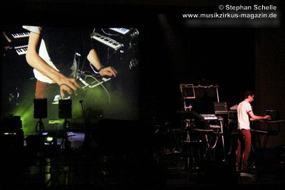 Kurz vor Ende seines Gigs huldigte Meesha mit dem Stück „Equinoxe Part 4“ dem großen französischen Meister Jean Michel Jarre. Traumwandlerisch spielte er dieses Stück im Alleingang und man konnte deutlich sehen, dass ein Großteil von ihm live gespielt wurde, da man ihm vom Saal aus direkt auf die Finger schauen konnte. Er wandelt dabei zwischen den verschiedenen Keyboards hin und her um die unterschiedlichen Sounds im richtigen Moment spielen zu können.
