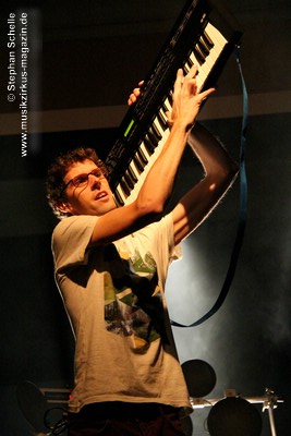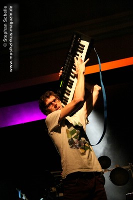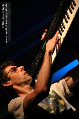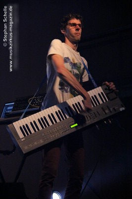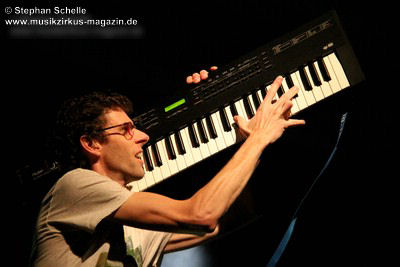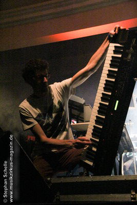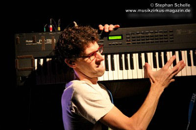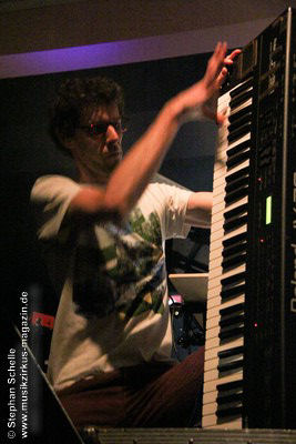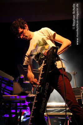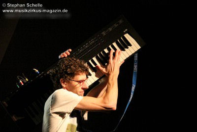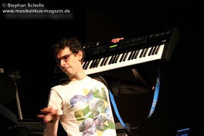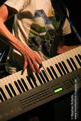 Das Highlight seiner One-Man-Show kam dann aber mit dem offiziell letzten Stück „Journey 2010“ von seinem Album „Within The Parellel“. Dieses rhythmische Stück mit Ohrwurmqualität garnierte er mit einer grandiosen Showeinlage. Er schnappte sich kurzerhand eines seiner Keyboards (an dem ein Gurt befestigt war) und spielte es vor der Brust, seitlich haltend und gar über Kopf. Damit bewies er, welch virtuose Spielweise er drauf hat. Das kam beim Publikum so gut an, dass Meesha nicht ohne Zugabe von der Bühne gelassen wurde. Dumm oder ein Glück – je nach Standpunkt -, dass er keine Zugabe geplant hatte und so wiederholte er die Performance des letzten Stückes noch einmal unter tosendem Applaus des Publikums. Meesha erfüllte somit nicht nur alle Erwartungen, sondern übertraf sie bei Weitem. Was für ein Opener!!!