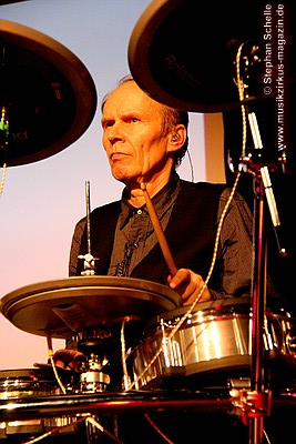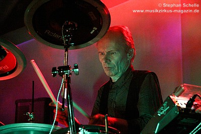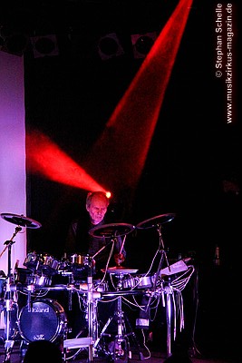 Hans Lampe so mit seinem elektronischen Schlagzeug positioniert, das man