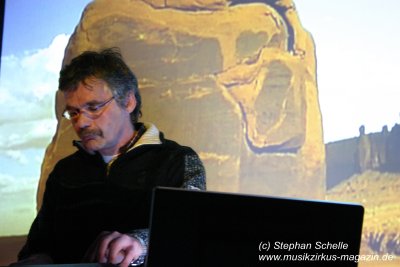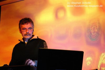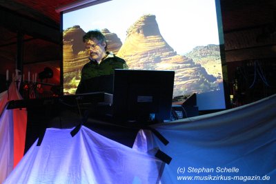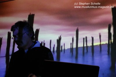 Allein mit seinen Keyboards hatte er sich vor einer Leinwand am