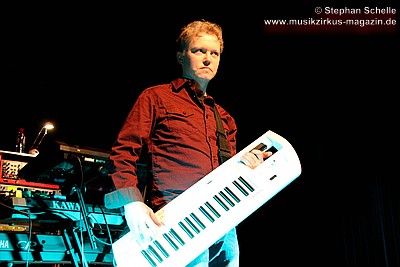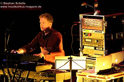 er hinter einer Burg aus Keyboards und weiteren Gerätschaften. Da kam zwar