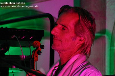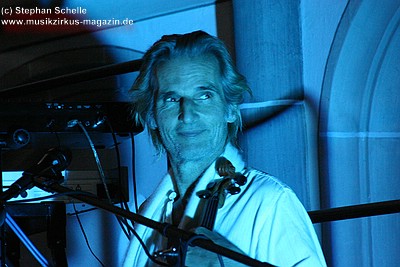 Zwischendurch sang er dazu einige Male in sein Violinenmikrophon, was