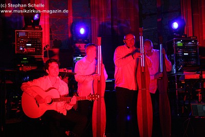 Bas, Detlef und Mario kamen mit seltsamen Instrumenten auf die Bühne.